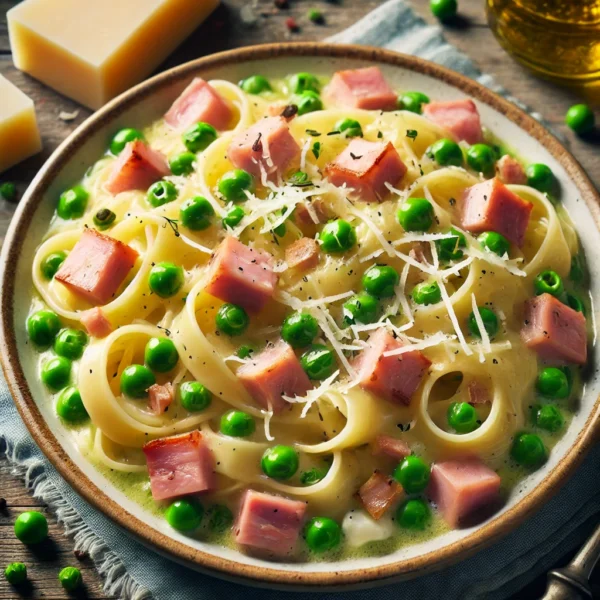 Tagliatelle with Ham and Peas