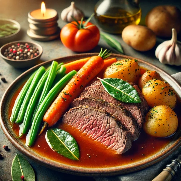 Roast Beef is a timeless Italian classic that brings a rich blend of flavors to your plate. Our carefully selected sirloin (Fransiska) is slow-cooked to perfection, ensuring tender, succulent slices of beef infused with the warmth of aromatic bay leaves and savory beef broth. Accompanied by a vibrant medley of fresh, seasonal vegetables and golden roasted potatoes, this dish offers a balanced and satisfying meal. The addition of rich tomato purée enhances the flavor with a touch of sweetness and depth, while rapeseed oil provides a healthy finish, ensuring a heart-friendly option that’s high in omega-3s. This dish is not only a feast for the taste buds but also a nourishing, wholesome experience for your body, crafted with care and attention to every detail.