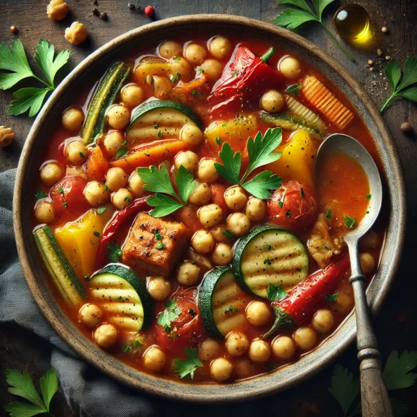 Värm dig med vår Kikärtssoppa, en mättande och smakrik rätt som lyfter fram kikärtornas mångsidighet på ett utsökt och tröstande sätt. Denna soppa innehåller en rik, aromatisk buljong infuserad med vitlök, lök och en blandning av kryddor, vilket skapar en smakrik bas. Möra kikärtor står i centrum och tillför en krämig textur och jordig smak. Med tillsats av färska grönsaker som morötter, selleri och spenat, är varje sked full av näring och livliga färger. Perfekt kryddad och sjuden till perfektion är denna soppa både tillfredsställande och näringsrik, vilket gör den till ett utmärkt val för en mysig måltid eller en hälsosam förrätt. Garnerad med ett stänk färska örter, är det en härlig rätt som värmer själen.